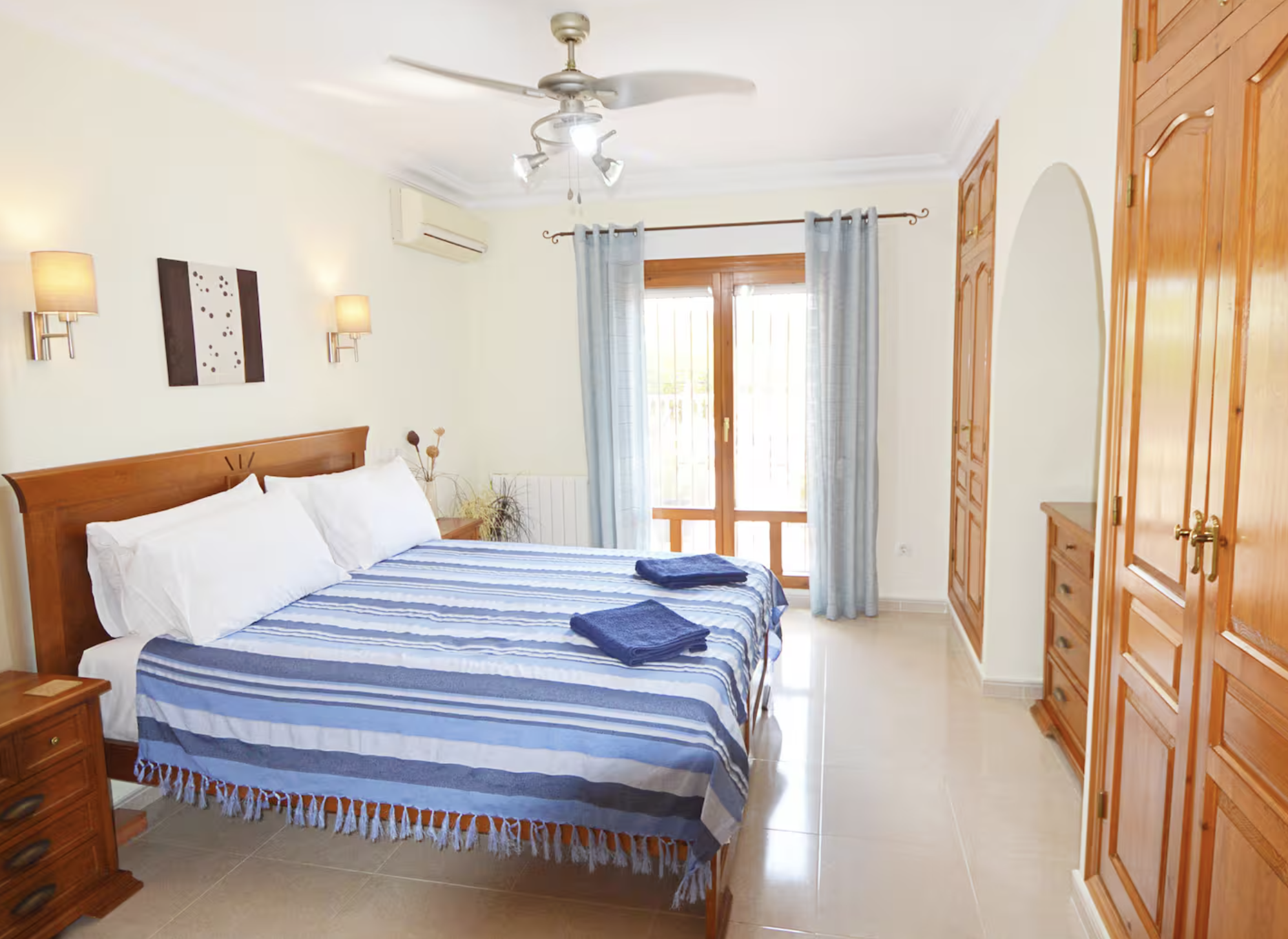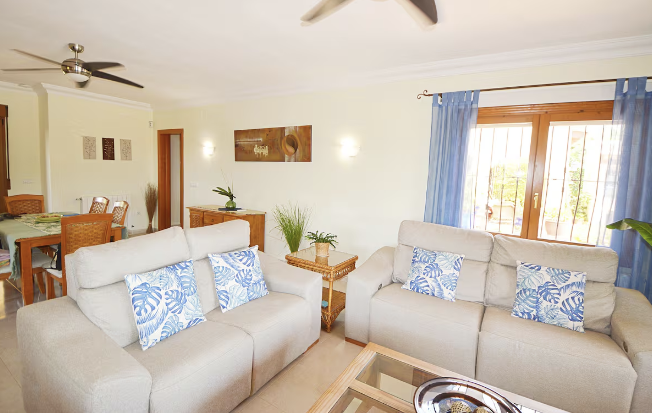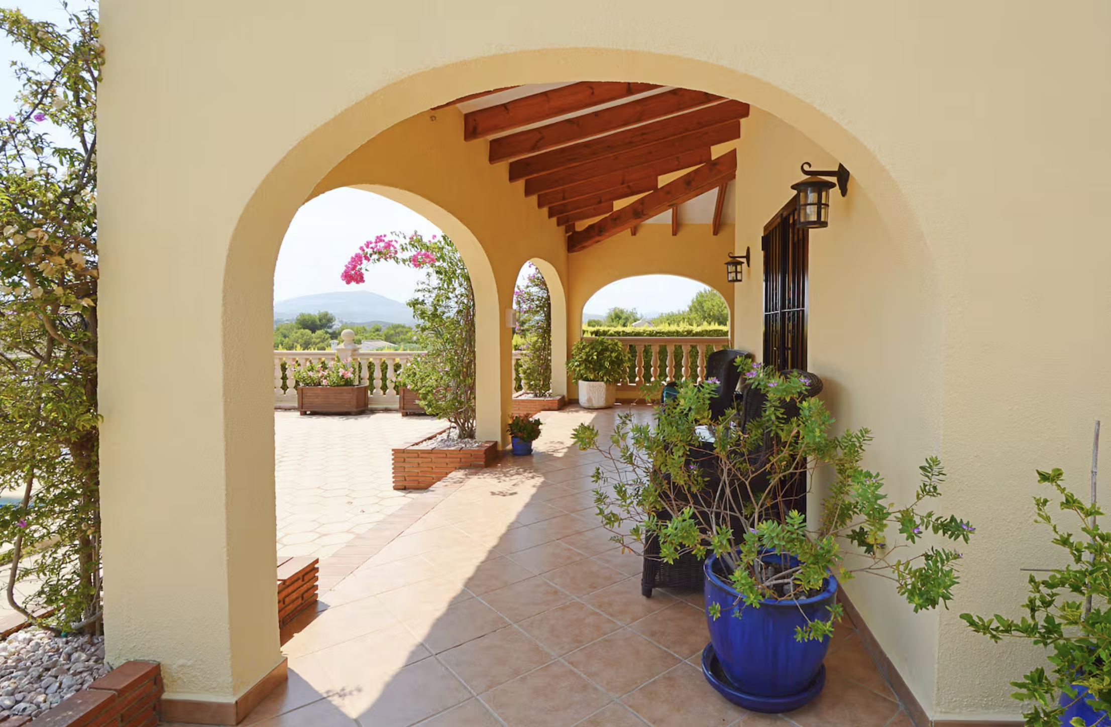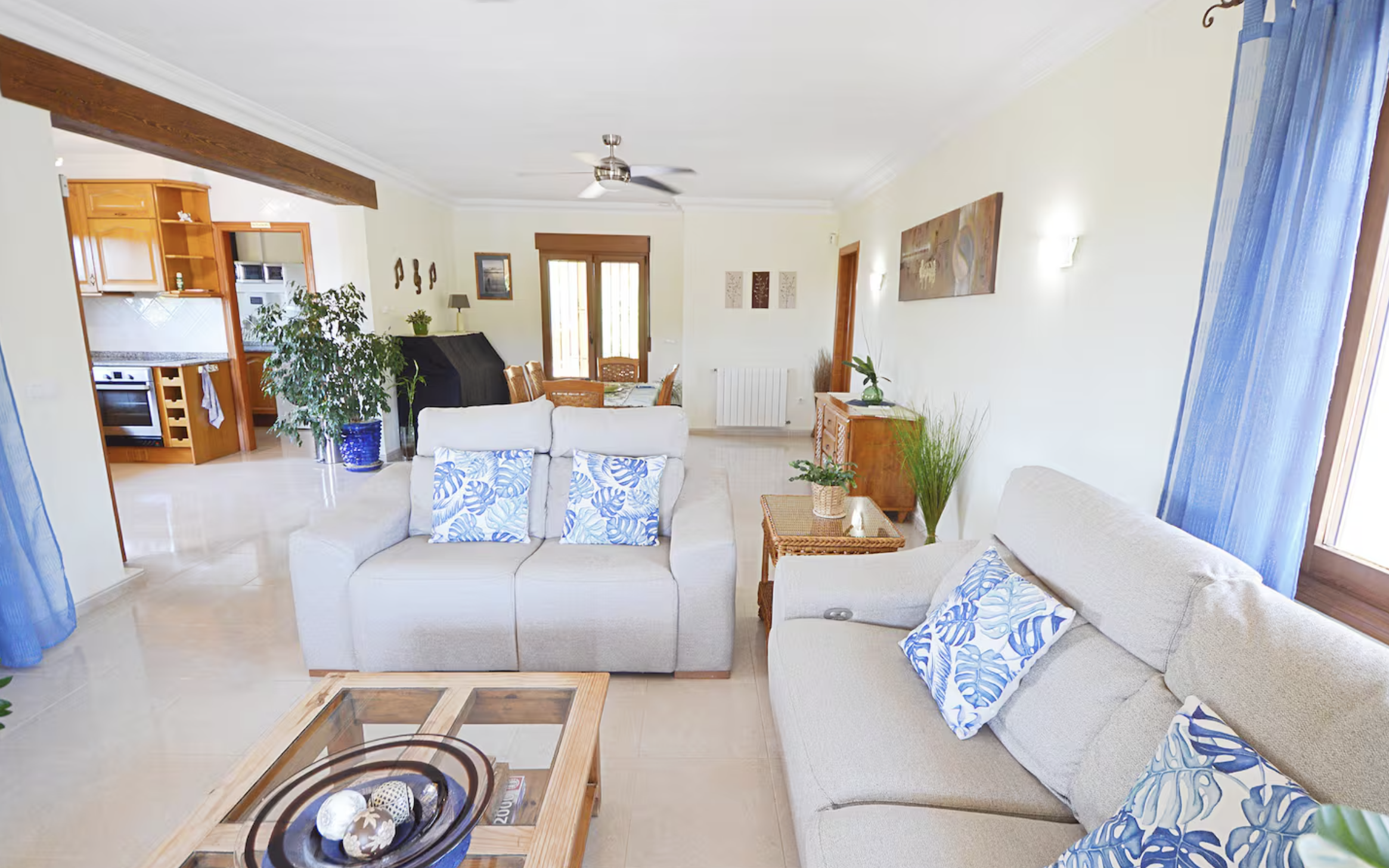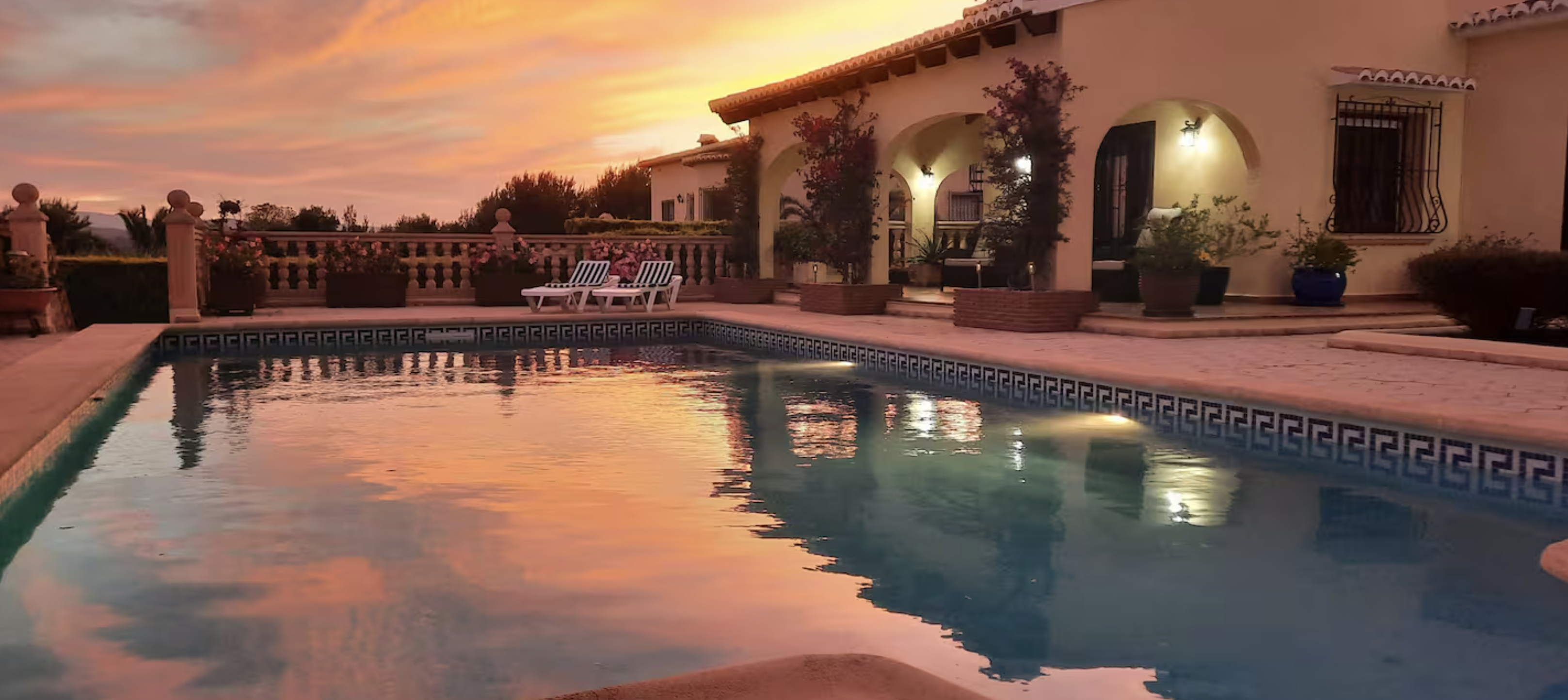 Disponible desde septiembre hasta finales de mayo de 2027. Villa de una sola planta, impecable en todas partes, salón y comedor con cocina abierta con acceso a una gran naya cubierta (terraza), que da a la piscina privada y bonitos jardines, bar exterior y área de cocina, impresionantes vistas hacia las montañas se puede disfrutar, hay 4 dormitorios y 3 dormitorios, aire acondicionado, ventiladores de techo y calefacción central de gas en todas partes, estacionamiento fuera de la carretera para 2 autos, ubicado a poca distancia en automóvil de todos los servicios.